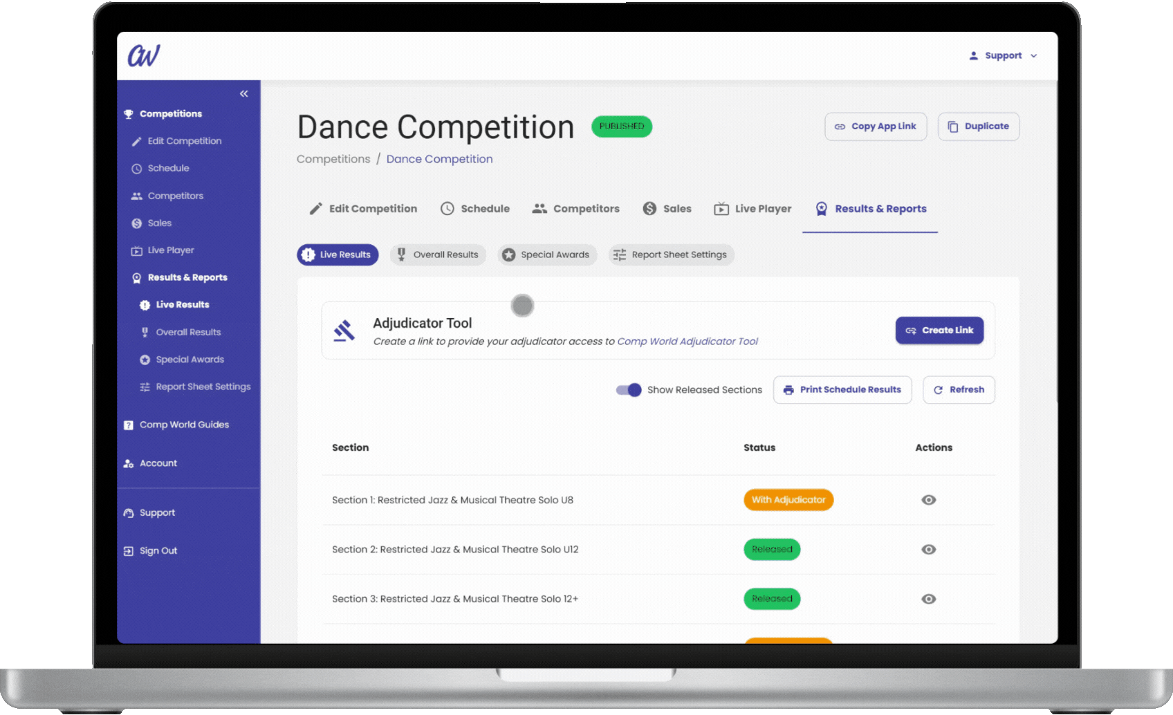 Simplify your entire competition workflow with Comp World.
